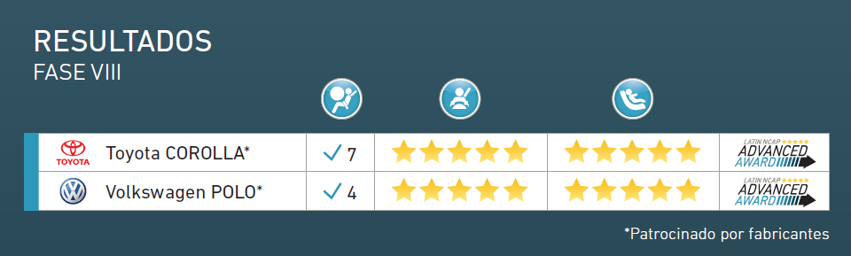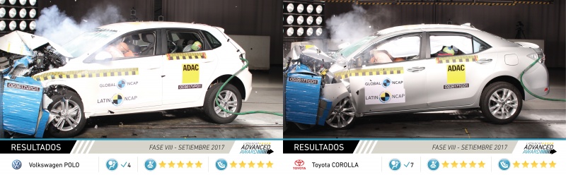Las últimas novedades fueron para Volkswagen y Toyota. Los modelos sometidos a las pruebas durante la quinta ronda de resultados del 2017 del Programa de Evaluación de Vehículos Nuevos para América Latina y el Caribe, fueron Polo, que llegará a la Argentina en 2018, y Corolla, que fue lanzado hace pocos meses con nuevo diseño. Ambos modelos se fabrican en Brasil y fueron destacados por alcanzan la mejor calificación posible para Protección de Ocupante Adulto y Protección de Ocupante Infantil.