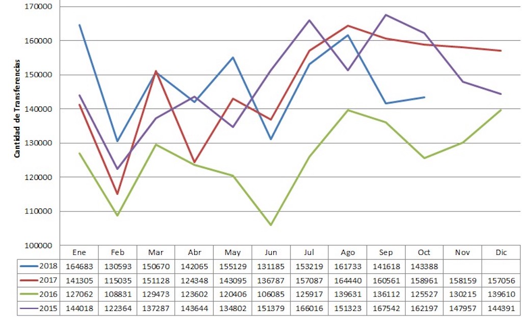 Según la Cámara del Comercio Automotor (CCA), en octubre se vendieron en el país 143.388 vehículos usados, una baja del 9,80% con respecto a igual mes del 2017, cuando se comercializaron 158.961 unidades. Comparado con septiembre, hubo una suba del 1,25%, ya que se transfirieron 141.618 unidades.