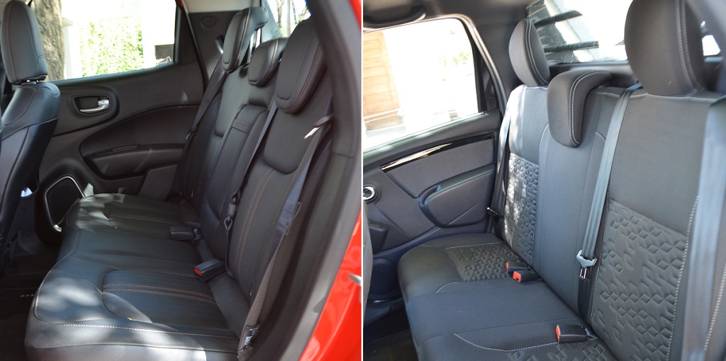 Plazas traseras Fiat Toro (izq.) y Renault Duster Oroch (der.)