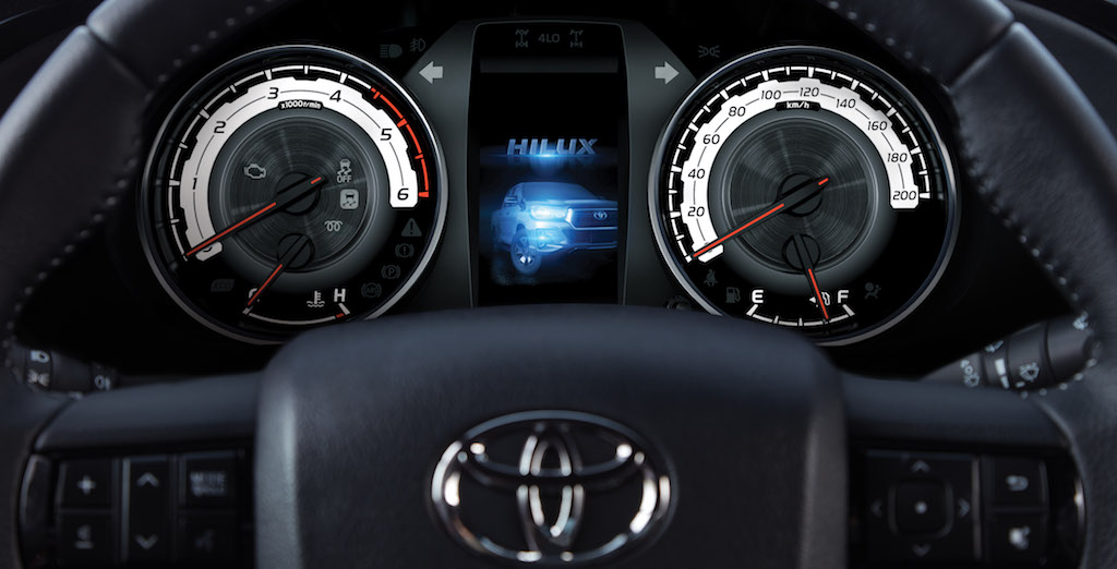 En el equipamiento de la Hilux SRX se destaca el Sistema de Ingreso Inteligente (Smart Entry System), que permite desbloquear las puertas simplemente apretando el botón de la manija de apertura de la puerta teniendo la llave inteligente en el bolsillo. A su vez, el Sistema de Encendido por Botón (Push Start Button) facilita la operación de arranque del vehículo. Adicionalmente, las versiones SRX y SRV (tanto manuales como automáticas) cuentan con control de velocidad crucero, además de un control de cuatro direcciones para el display de información múltiple. En todas sus versiones está equipada con Asistente de arranque en pendientes (HAC – Hill Start Assist Control), un sistema que facilita maniobras de ascenso tanto en off road como en ciudad, actuando automáticamente sobre los frenos en una partida detenida.   A su vez, todas las versiones 4×4 están equipadas con Control de tracción activo (A-TRC – Active Traction Control). Este sistema, que funciona cuando está activada la tracción 4×4, previene el derrape del vehículo en una aceleración aplicando automáticamente presión de frenado en cualquiera de las 4 ruedas que eventualmente pierda adherencia, y envía así mayor torque a la rueda contraria, asegurándose que el vehículo pueda traccionar correctamente. Otro equipamiento disponible en todas las versiones 4×4 es el bloqueo de diferencial trasero. Al accionarlo, este sistema permite que ambas ruedas traseras giren a la misma velocidad, aprovechando todo el torque disponible y facilitando maniobras de escape en una situación de atascamiento. En lo que respecta a Seguridad Activa, Hilux 2019 está equipada en todas sus versiones con: