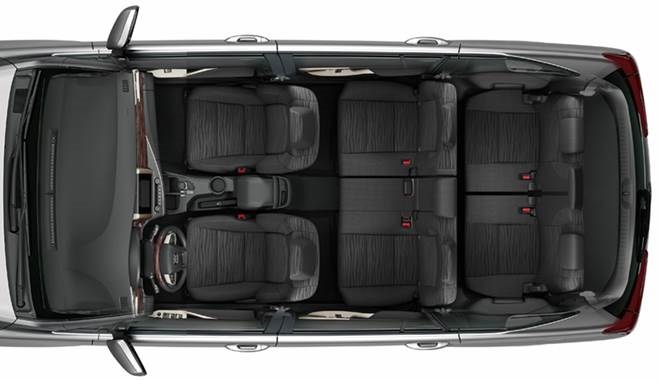 Innova tiene capacidad para 8 pasajeros, distribuidos en 3 filas de asientos (2+3+3). Todas las plazas cuentan con cinturón inercial de 3 puntos y apoyacabezas. El respaldo reclinable en todas las filas, regulación longitudinal de la segunda fila, y vasto espacio en altura para la cabeza de los ocupantes.