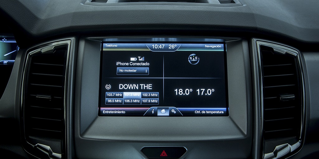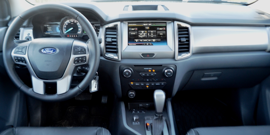 Por dentro, la Ranger es bien tecnológica, una característica de la marca que toma cada vez mayor dimensión. Comparada con sus competidoras, es la más futurista y ocupada en que el cliente tenga “todo lo nuevo”. Su tablero se define con un velocímetro ubicado en el centro rodeado de dos pantallas digitales. En una de ellas, se da información del vehículo, mientras que en el otro se encuentra el GPS y datos para el entretenimiento.