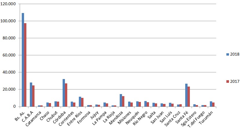 En el caso de Capital Federal creció 12,98% y la provincia de Buenos Aires 12,28 por ciento. La única con dato negativos en el bimestre fue Santa Cruz con una baja de casi 6 por ciento.