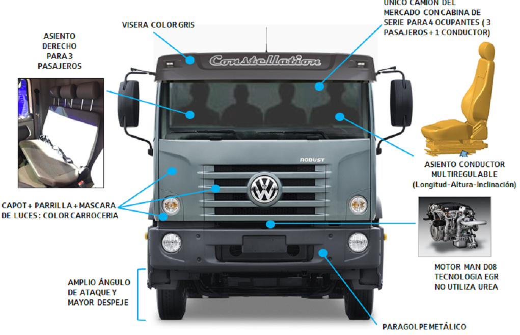 Está equipado con un motor Cummins ISF, de 3,8 litros y tecnología SCR, con torque máximo a 600 Nm y 175 cv de potencia y transmisión manual Eaton ESO-6106. Contará además con una opción de transmisión automatizada. Precios: $1.087.702