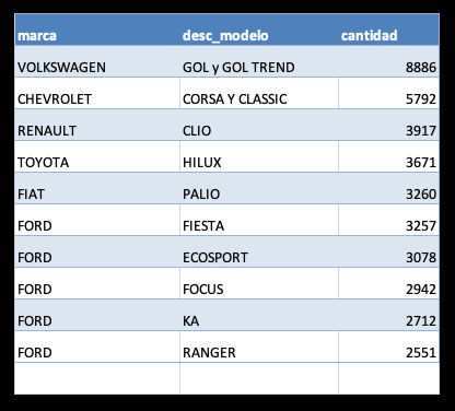 En este contexto, los 10 modelos más vendidos del mes fueron los siguientes: